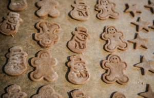 Mix ingredients until a dough forms. Roll out flat and cut into shapes, or just spoon onto your baking sheet. Cook for about 20 minutes at 350°F.