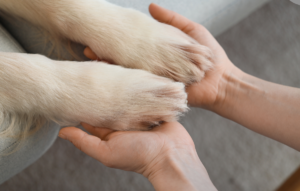 1. Hold your dog’s paw gently but firmly