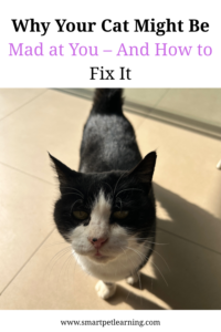 Animals don’t take things personally like humans do. If your cat seems annoyed or mad, it’s not personal. Look for the signs something is bothering them, take appropriate action to make them feel safe and loved, and practice patience while they regain trust.